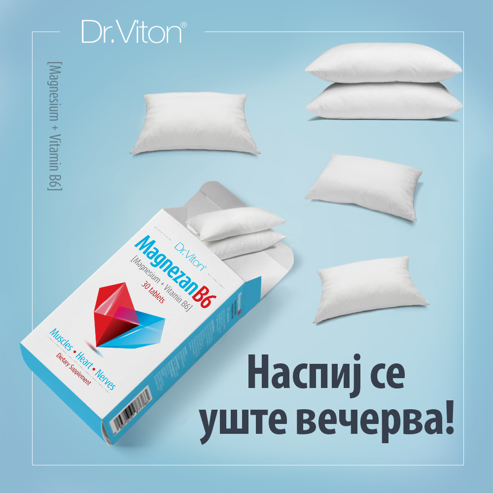 За да го олесниш заспивањето, доволно е на организамот да му помогнеш со Magnezan B6 на Dr. Viton.
