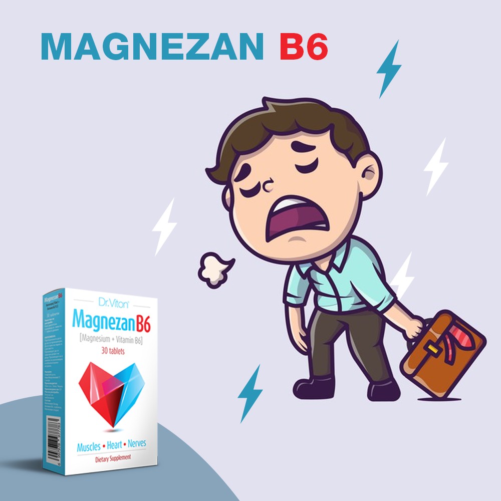 Dr. Viton – Magnezan B6 проверено ги намалува симптомите на нервоза, раздразливост, блага анксиозност, нарушен сон и грчеви во мускулите. Ја подобрува работата на нервниот систем, срцето и мускулите. Го намалува стресот.