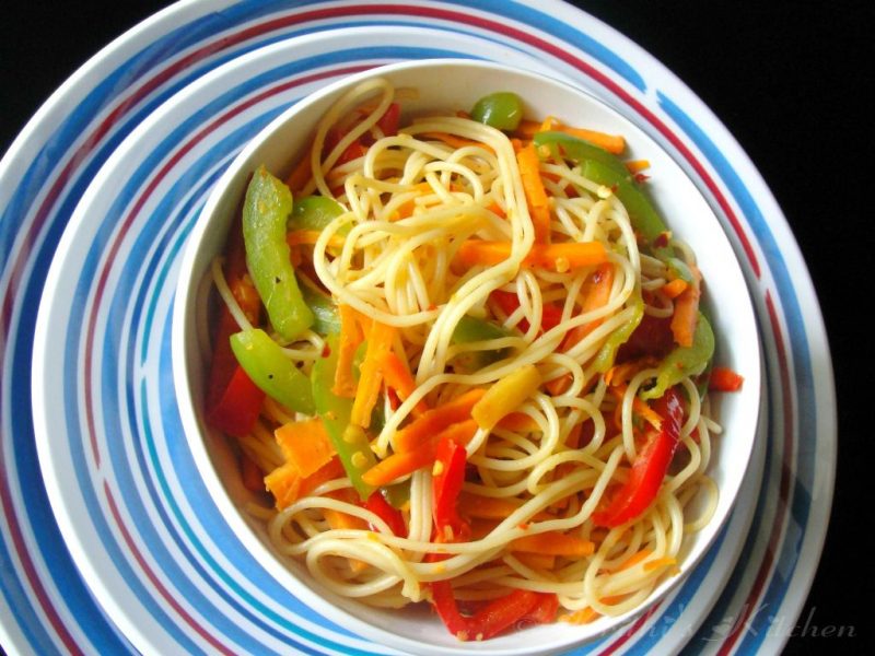 Потребни состојќи : (за едно лице) 100 гр. шпагети, по 40 гр. разновиден зеленчук (шампињони,…