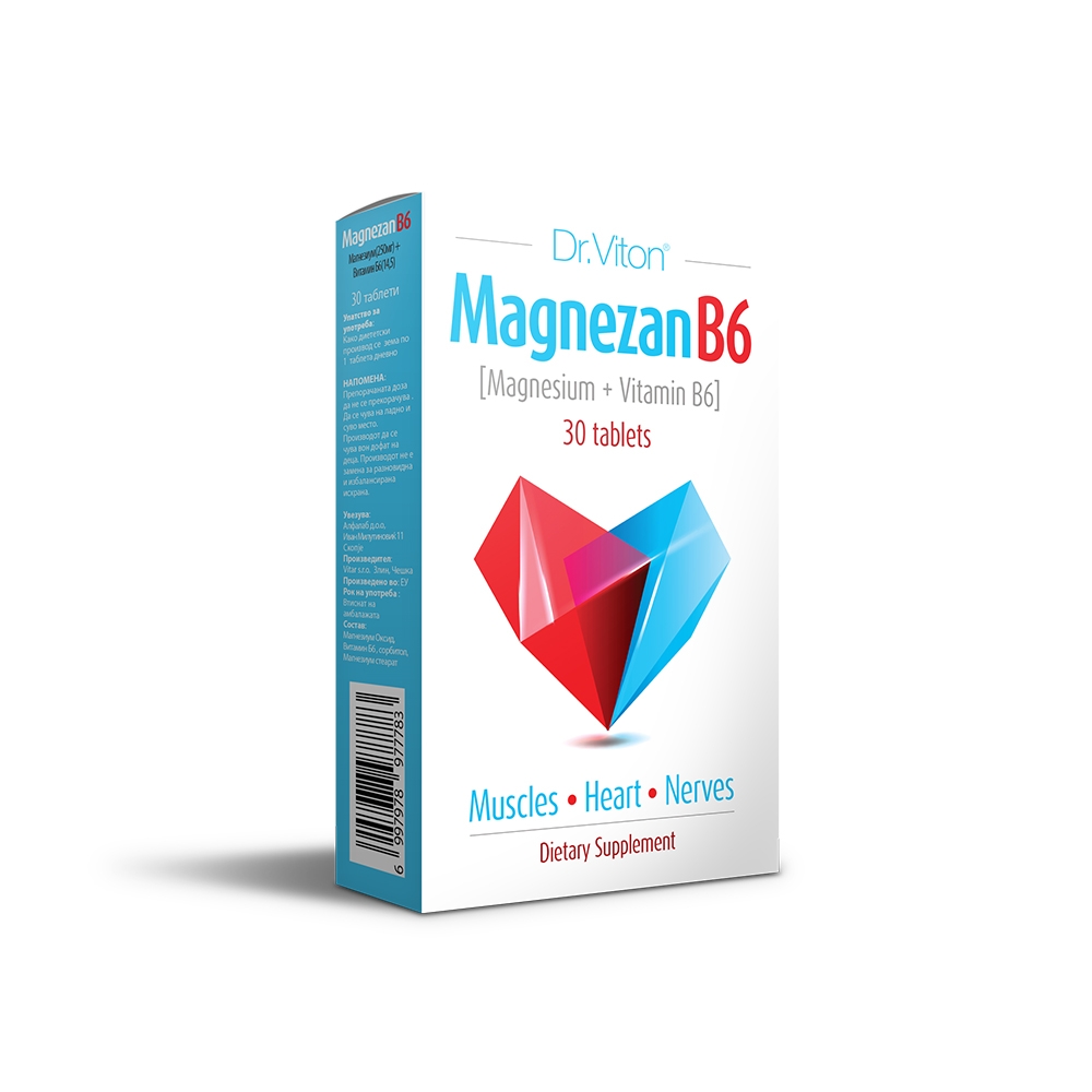 Dr.Viton – MagnezanB6 е спој на докажаните минерал и витамин – магнезиум и витамин Б6, за кој научно е потврдено дека природно го елиминираат стресот и го штитат нервниот систем од сите негови несакани последици.