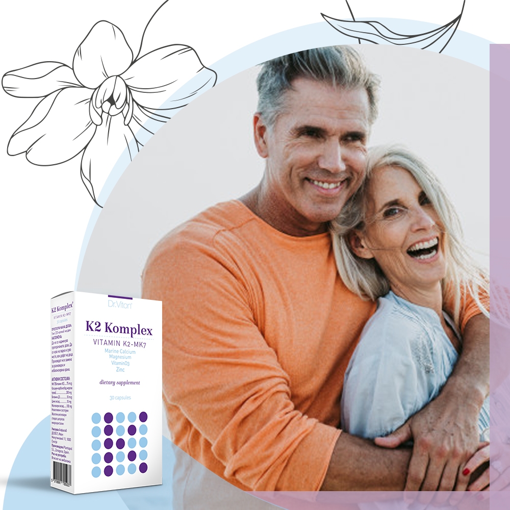 Во Dr. Viton K2 Komplex – кој, освен овој клучен витамин, содржи органски калциум, магнезиум, витамин Д3 и цинк – докажано успешна синергија што диктира стабилен срцев ритам и проодни артерии.
