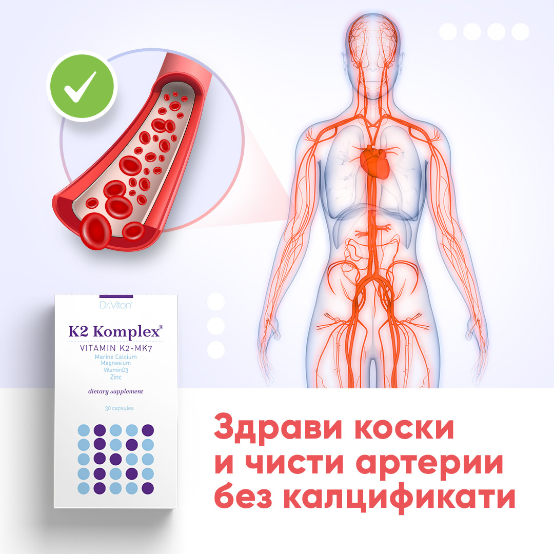 Dr. Viton K2 Komplex е суплемент што гарантира дека калциумот стигнува на вистинското место (во коските) и ги остава артериите здрави и флексибилни.