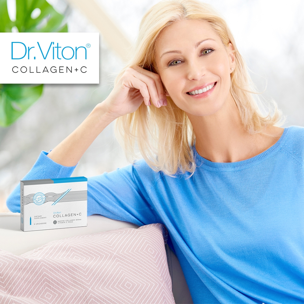 НА ТВОЈАТА КОЖА И ТРЕБА ДНЕВНА ДОЗА КОЛАГЕН… со  Dr. Viton – Collagen +C ДНЕВНИТЕ ДОЗИ (АМПУЛИ) КОЛАГЕН збогатен СО ВИТАМИН Ц се вистинска магична напивка која ги регенерира клетките на кожата, ја подобрува еластичноста ги регулира нивоата на влажност на кожата, а тоа ја прави кожата мазна и еластична.