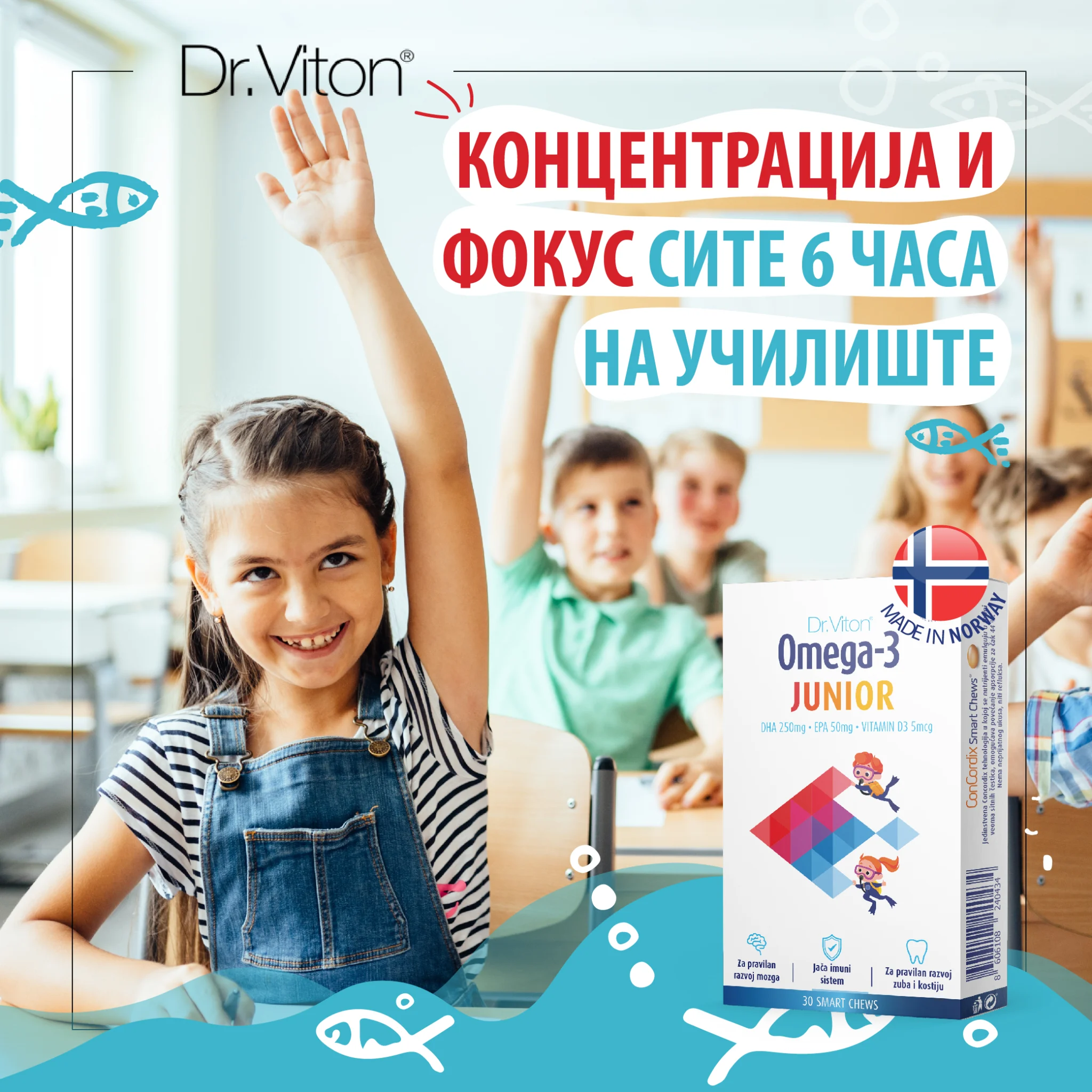Иако рибата е најбогат природен извор на Омега-3, многу деца не го сакаат нејзиниот вкус. Со Dr. Viton Omega-3 Junior, оваа есенцијална масна киселина е достапна во форма на желе – бонбона, со пријатен вкус која ќе прифатат со задоволство. Со овој додаток, можеш да бидеш сигурен дека твоето дете ќе ги добие потребните Омега-3 за здрав и успешен развој.