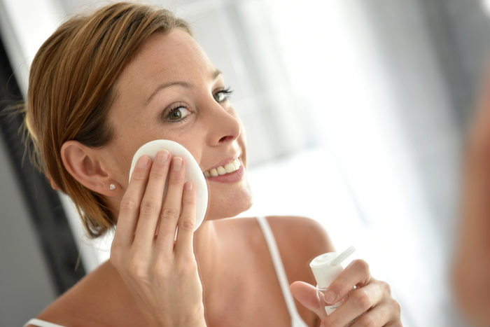 Целосен тонер за кожа. За да ги осветлите темните дамки. Потоа, исчистете го лицето и оставете го да се исуши природно – и повторете по желба, неколку пати на ден.