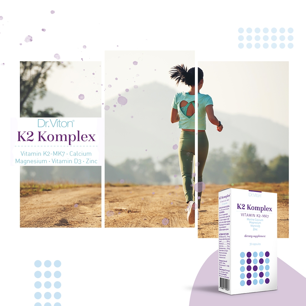 Во Dr. Viton – K2 Komplex има се што им е потребно на твоите коски, но уште поважно, овој суплемент ќе се погрижи калциумот да стаса до коските. На овој начин, суплементот на Dr. Viton индиректно ќе ти ги зашти крвните садови од запушување и ќе ти обезбеди непречена срцева работа.
