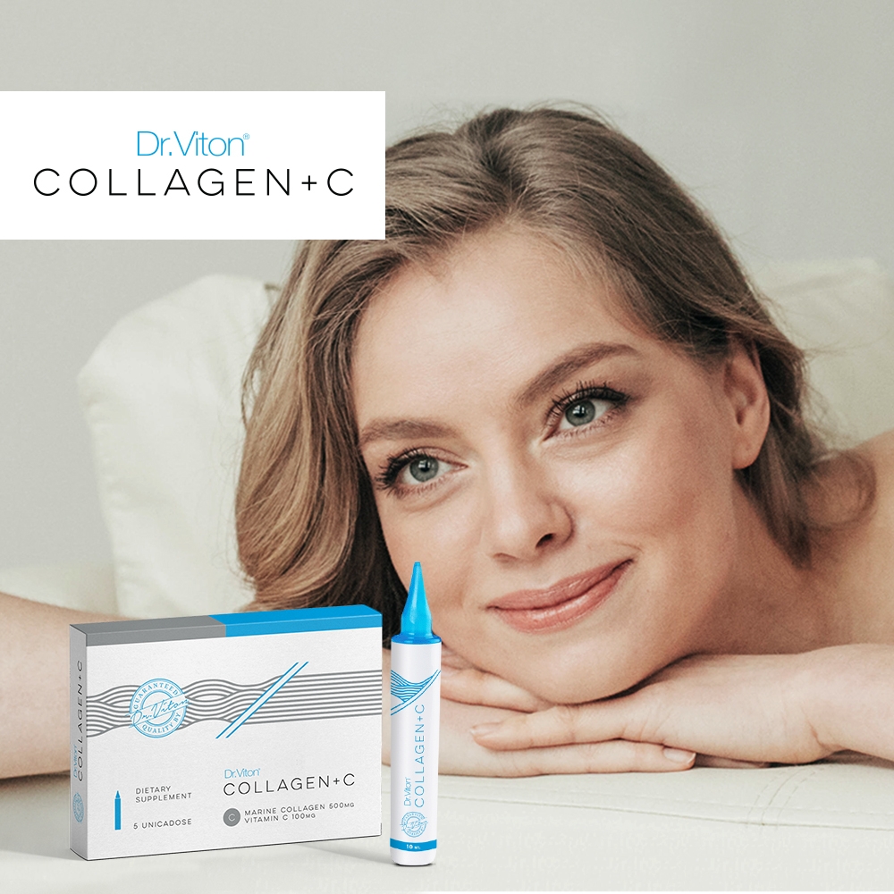 Накусо, Dr. Viton Collagen + C ќе ве разубави од глава до пети! Ќе ви ја зајакне косата и ноктите, а кожата ќе ја измазни до степен на непрепознатливост. Секоја ампула содржи 500 мг морски колаген + витамин Ц кои ќе го надоместат загубениот колаген и ќе поттикнат продукција на нов наплив.